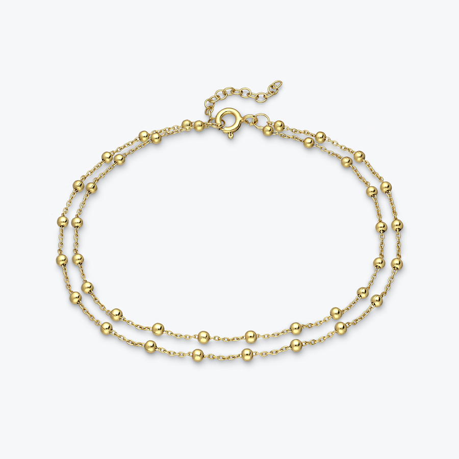 Dvojitý stříbrný řetízek na nohu s kuličkami pozlacený - Ag925