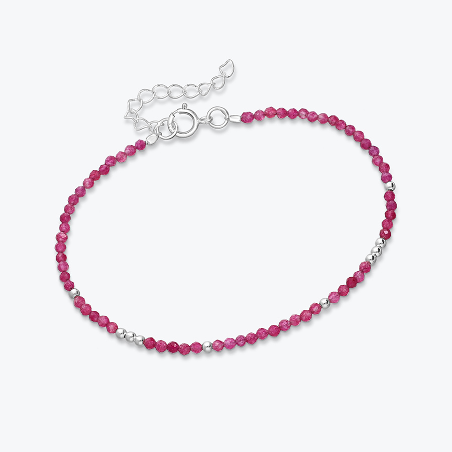 - Minerální náramek z broušeného rubínu se stříbrnými korálky - Ag925