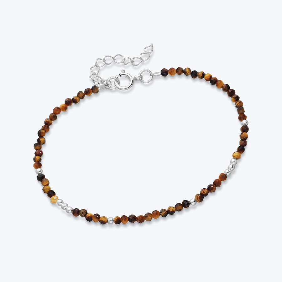 - Minerální náramek z broušeného tygřího oka se stříbrnými korálky - Ag925