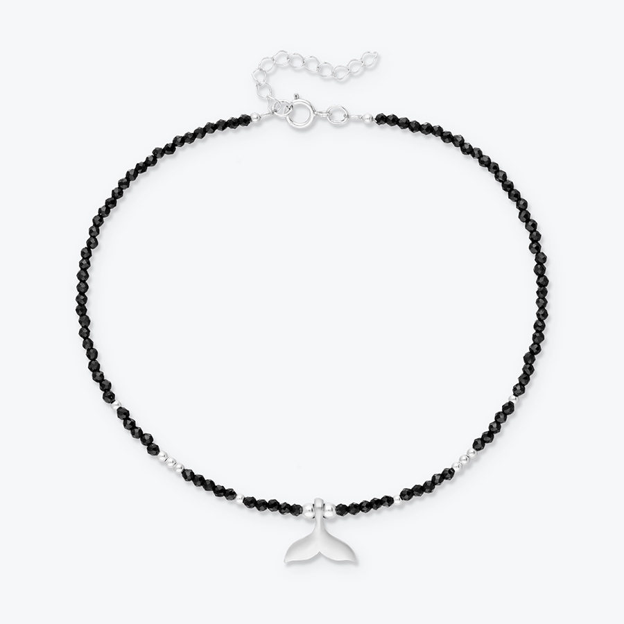 Nákotník Ploutev s broušeným černým spinelem a stříbrnými korálky je velice jemným a elegantním šperkem. Nákotník je naprosto nezbytným doplňkem vašeho letního outfitu. Je tou pověstnou třešničkou na dortu, kterou si zamilujete. A nejen vy. Buďte si jistá, že upoutáte pozornost, sexy vzhled vašich kotníků bude k nepřehlédnutí. Ozdobená nákotníkem ze spinelu se budete cítit dokonale žensky, a propojená s přírodou.