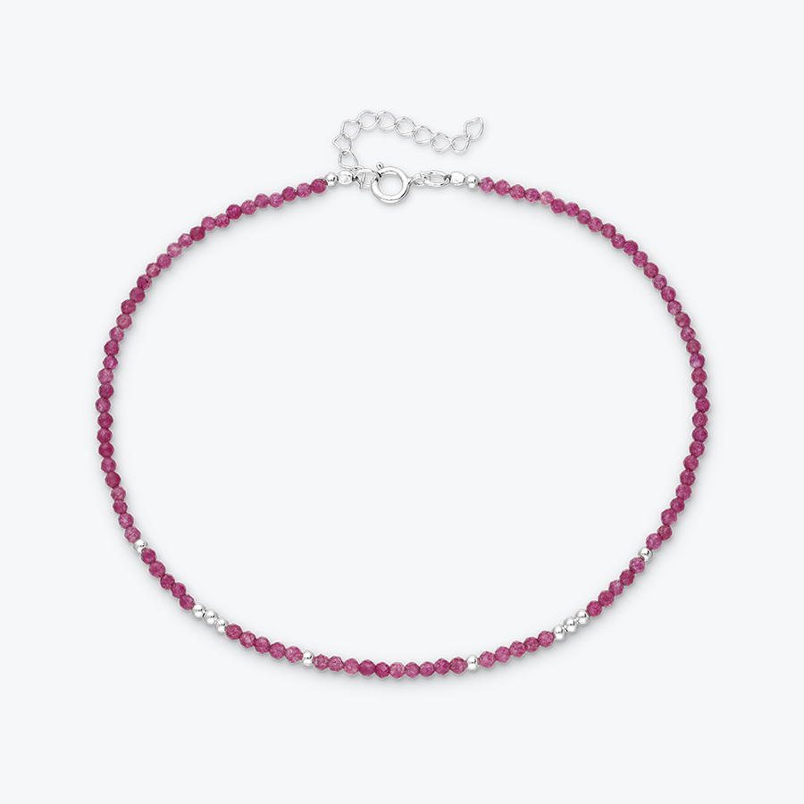 Nákotník s broušeným rubínem a stříbrnými korálky je velice jemným a elegantním šperkem. Nákotník je naprosto nezbytným doplňkem vašeho letního outfitu. Je tou pověstnou třešničkou na dortu, kterou si zamilujete. A nejen vy. Buďte si jistá, že upoutáte pozornost, sexy vzhled vašich kotníků bude k nepřehlédnutí. Ozdobená nákotníkem z rubínu se budete cítit dokonale žensky, a propojená s přírodou.