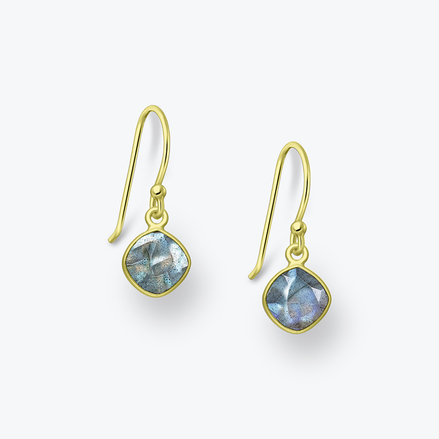 Pozlacené stříbrné náušnice z broušeného labradoritu.