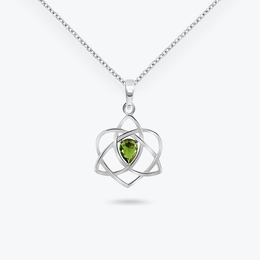 Stříbrný náhrdelník s vltavínem propojuje dva silné symboly – srdce a triquetru. Uprostřed propletení těchto dvou symbolů je řetízek ozdoben broušeným vltavínem ve tvaru kapky, což z něj dělá nejen krásný, ale také hluboce symbolický šperk. Srdce, jako univerzální symbol lásky, představuje něhu, vášeň a emocionální spojení. V kombinaci s triquetrou, která symbolizuje věčnost, nekonečnost a propojení tří klíčových aspektů života (například těla, mysli a duše), vzniká silný amulet, jenž reprezentuje stabilitu v lásce, harmonii, věčnou jednotu a duchovní rovnováhu.