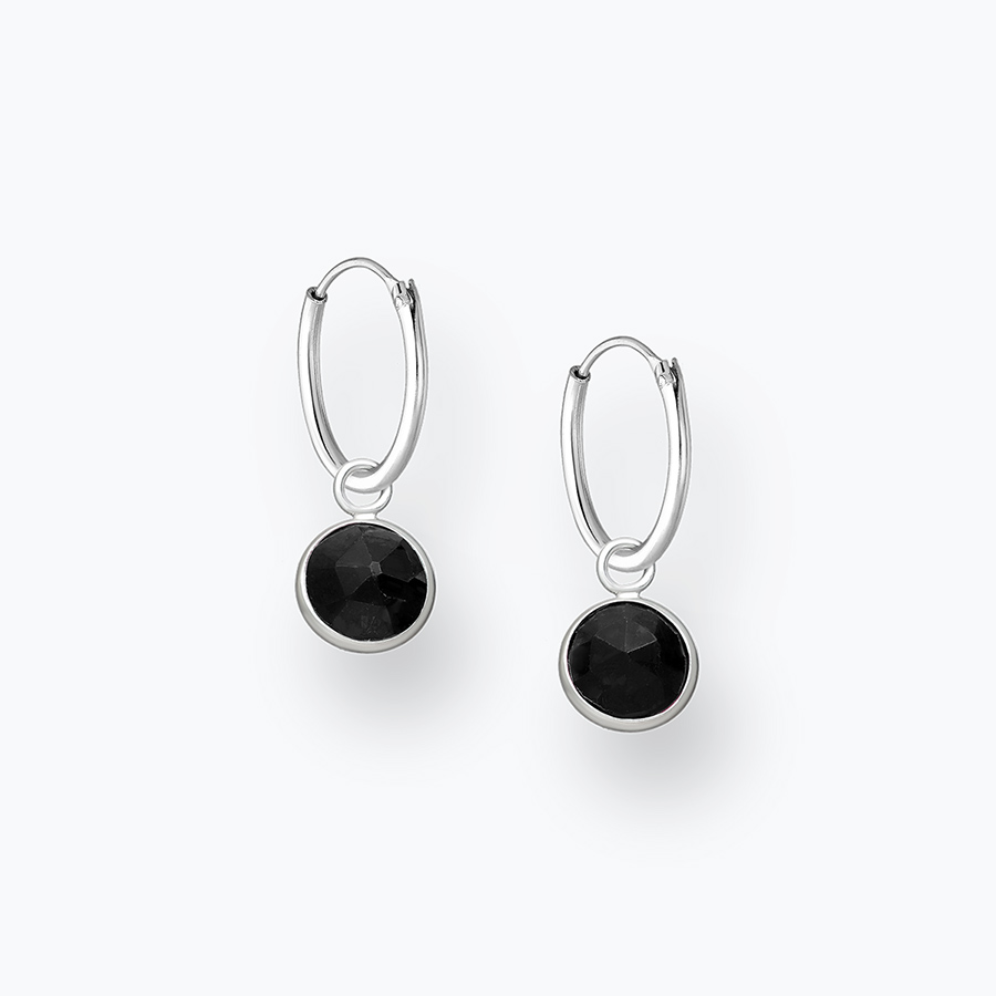 Stříbrné náušnice kroužky s černým spinelem - Ag925