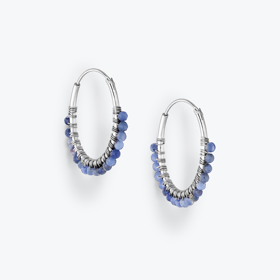Stříbrné náušnice kruhy se sodalitem - Ag925