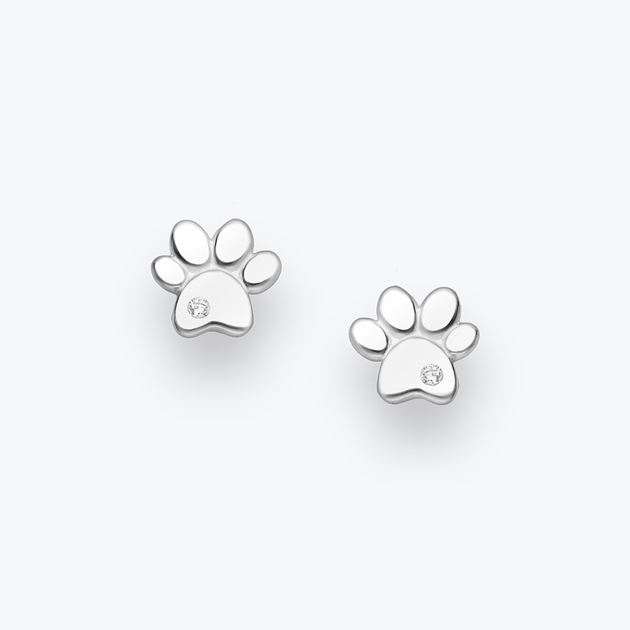 - Stříbrné náušnice pecky Tlapka se zirkonem - Ag925