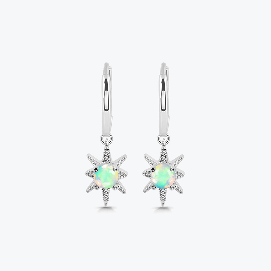 Stříbrné náušnice s opálem a topazem jsou módním a velmi oblíbeným doplňkem. Tyto visací náušnice z pravého opálu a topazu jemně rozzáří váš vzhled. Opál typický svými barevnými odlesky je zasazen do umělecky zpracovaného lůžka ve tvaru hvězdičky zdobené třpytivými topazy. Celkový dojem je velmi elegantní a decentní.
