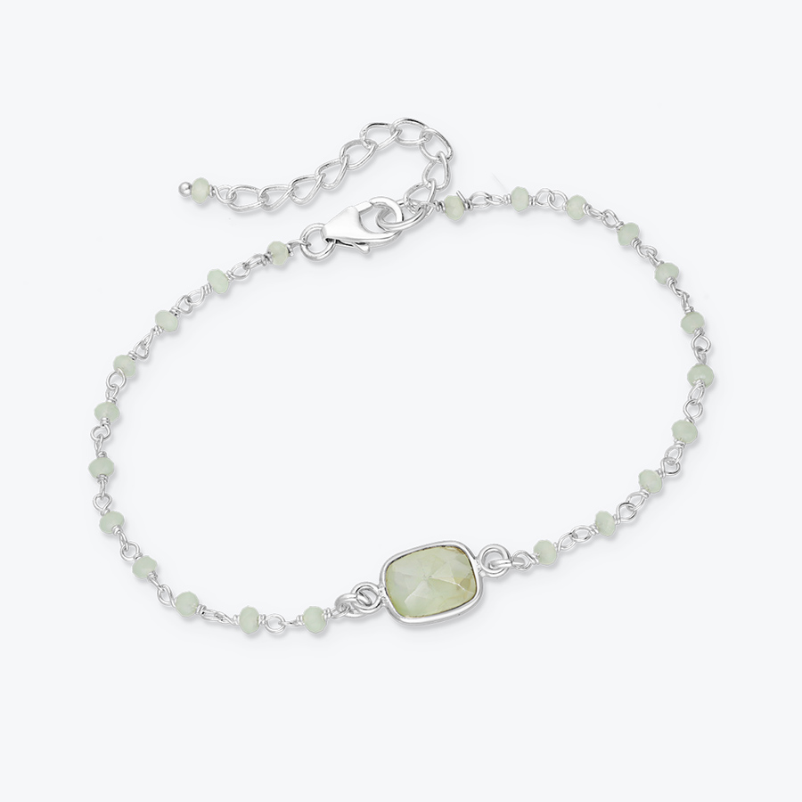 - Stříbrný korálkový náramek Prehnit - Ag925
