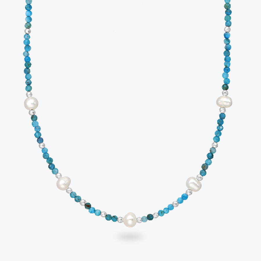 Stříbrný náhrdelník z apatitu, říčních perel a stříbrných korálků - Ag925