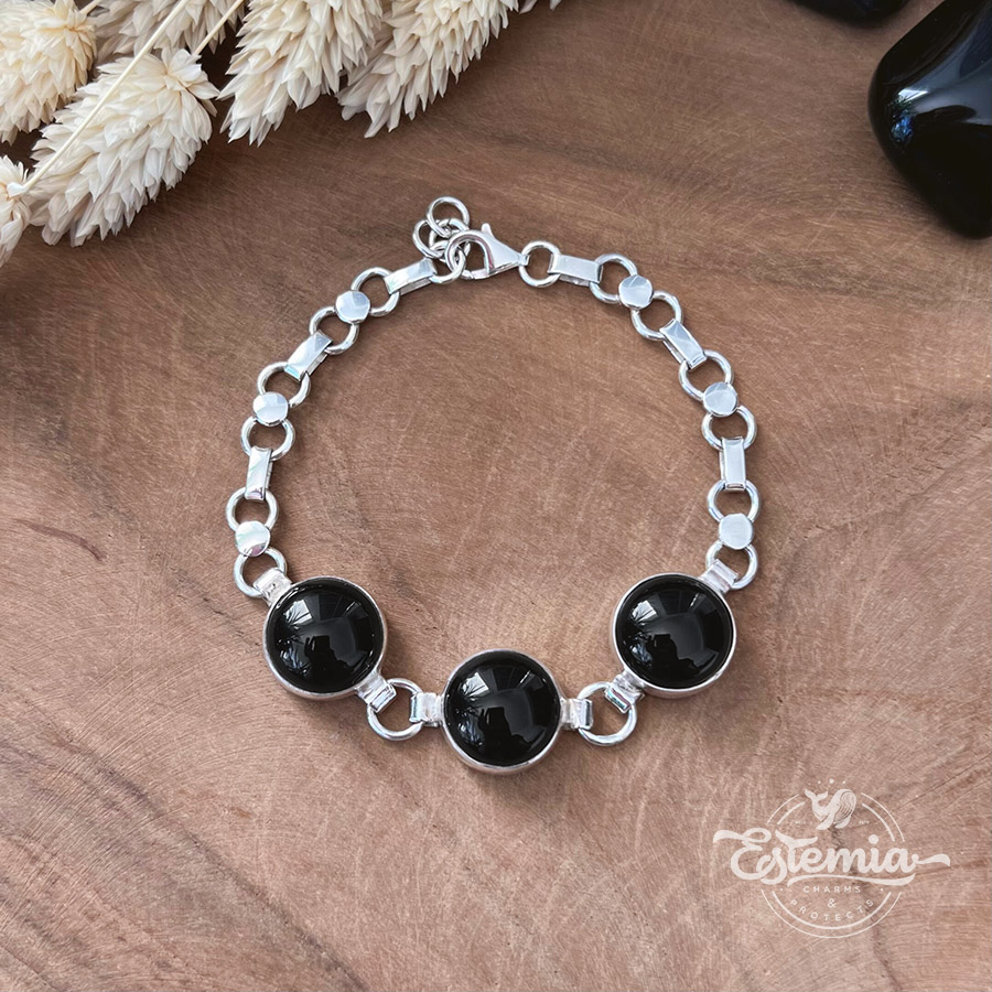 Dámský stříbrný náramek s přívěsky z onyxu se hodí jako originální dárek, nebo jako doplněk k náramkům z minerálů, který zcela jistě potěší.