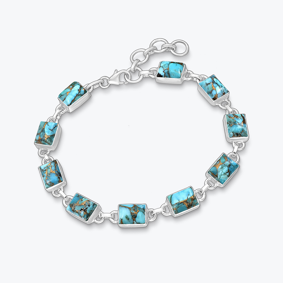 Stříbrný náramek z tyrkysu s mědí - Ag925