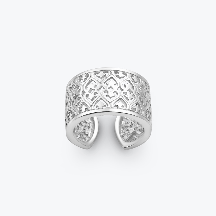Stříbrný ornamentální prsten je opravdu precizně zpracovaným šperkem, který musíte mít. Tento masivní prsten je roztahovací, tedy nastavitelný, a snadno jej přizpůsobíte vaší velikosti. Na ruce je příjemný, lehoučký a krásně vám padne. Prstýnek s nádechem Orientu je ručně vyroben ze sterlingového stříbra Ag 925/1000.