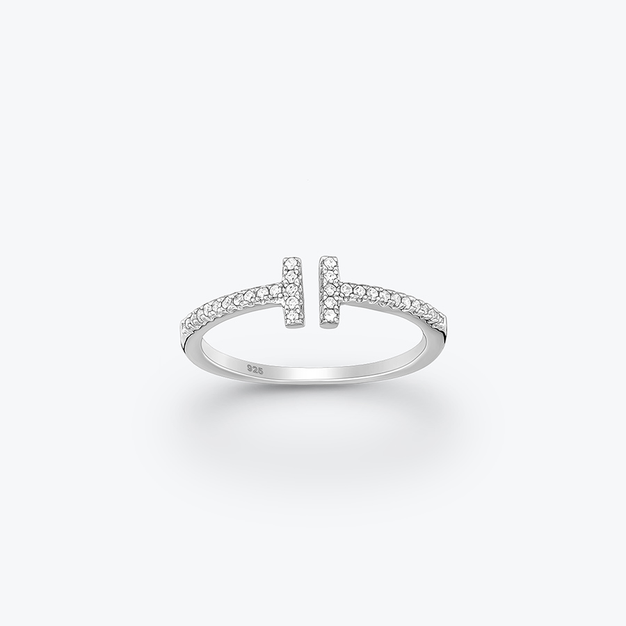 - Stříbrný prsten se zirkony Bars nastavitelný - Ag925