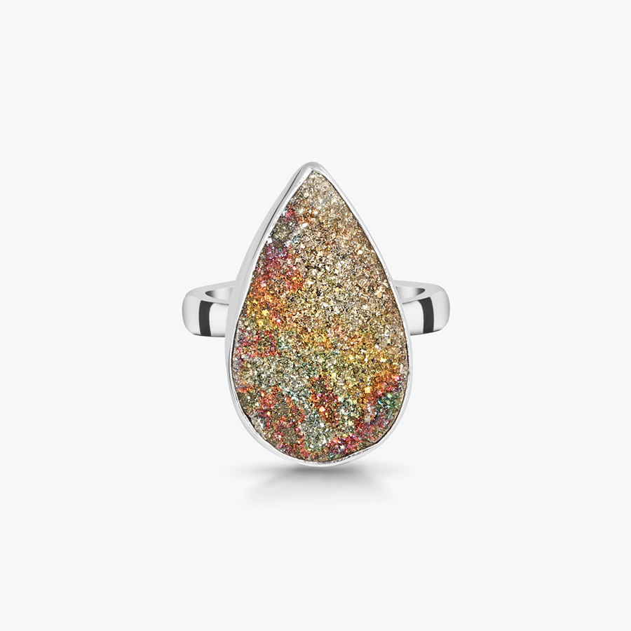 Stříbrný prsten spektropyrit Kapka nastavitelný.