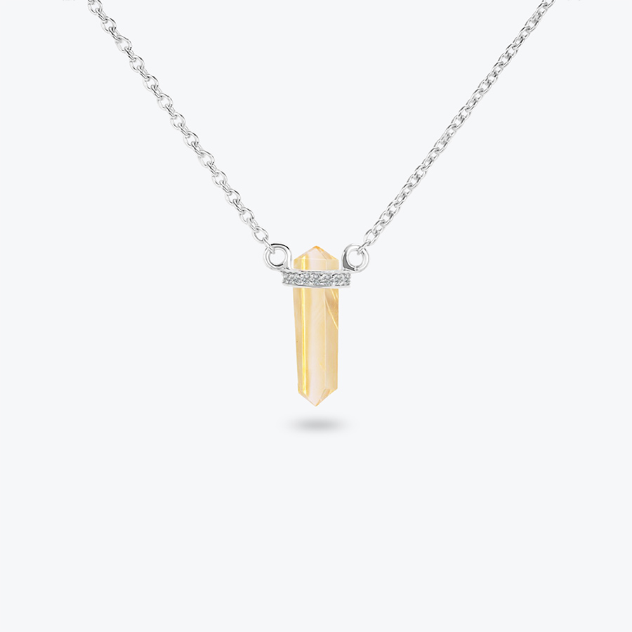 Stříbrný řetízek s citrínem vybroušeným do překrásné špice je ručně vyrobeným šperkem, který vás ozdobí a originálně doplní váš styl. Pokud jste milovnicí krystalů a přírodních šperků, věřte, že tento kousek musíte mít. Citrínový náhrdelník zdobený bílým topazem zaujme svým elegantním zpracováním a svou drobností.