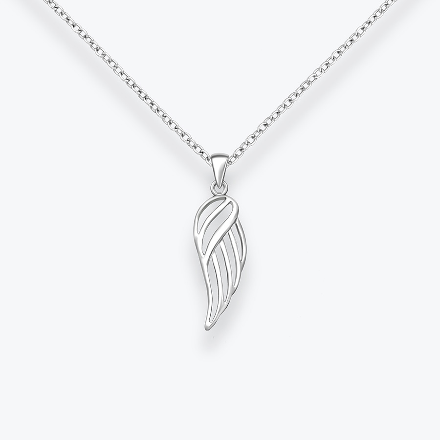 Stříbrný řetízek s andělským křídlem.