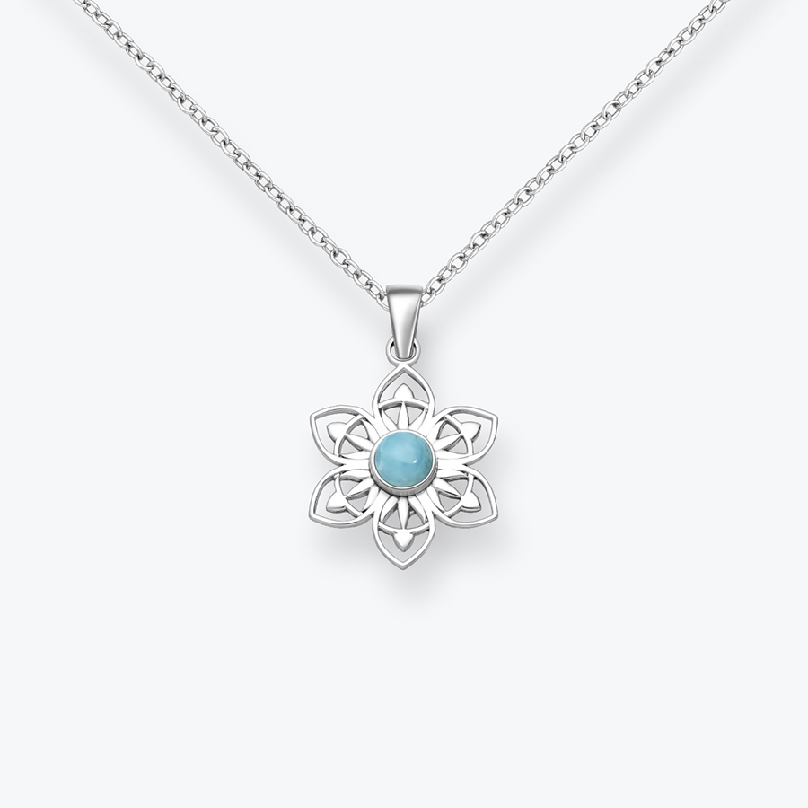 - Stříbrný řetízek s larimarem Lotosový květ - Ag925