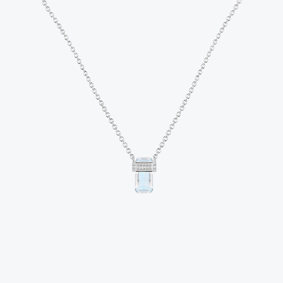 Stříbrný řetízek s měsíčním kamenem vybroušeným do překrásného hranolu je ručně vyrobeným šperkem, který vás ozdobí a originálně doplní váš styl. Pokud jste milovnicí krystalů a přírodních šperků, věřte, že tento kousek musíte mít. Měsíčkový náhrdelník zdobený bílým topazem zaujme svým elegantním a dokonalým zpracováním.