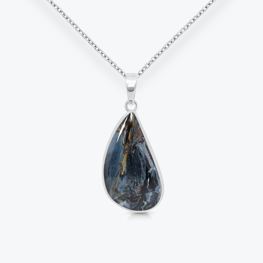 Pietersit je minerál s ohromující směsí tmavě modrých, zlatavých, šedých a hnědých odstínů, které připomínají bouřkovou oblohu plnou blesků. Tento kámen je vysoce ceněn pro své dynamické barevné variace a hypnotizující vzory, které jsou jedinečné pro každý jednotlivý kus. Náhrdelník s pietersitem je tak originálním uměleckým dílem matky přírody.