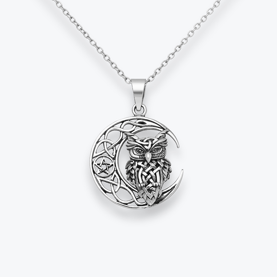 Spletené keltské uzly zdobící sovu i měsíc odkazují na nekonečnost, propojení všech věcí a hlubokou harmonii vesmíru. Působí jako připomínka, že vše je součástí většího celku, a zároveň chrání svého nositele.