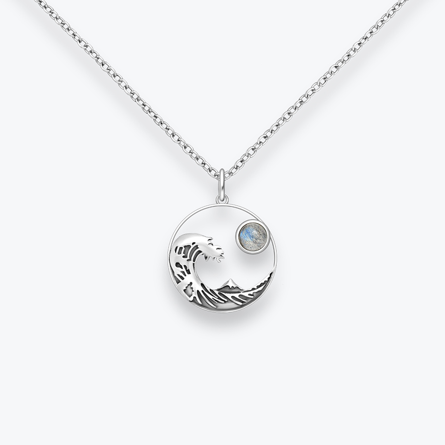Stříbrný náhrdelník můžete libovolně kombinovat s ostatními stříbrnými šperky,náramky z minerálů nebo se stříbrným náramek s vlnou a šňůrkovým náramkem s vlnou z chirurgické oceli.