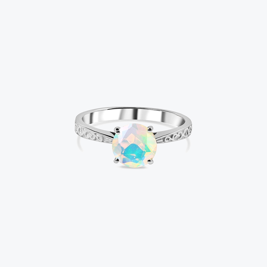 - Stříbrný zásnubní prsten s pravým opálem a ornamenty - Ag925