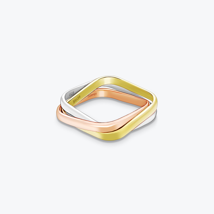 Trojitý prsten stříbro, mosaz a měď - Ag925
