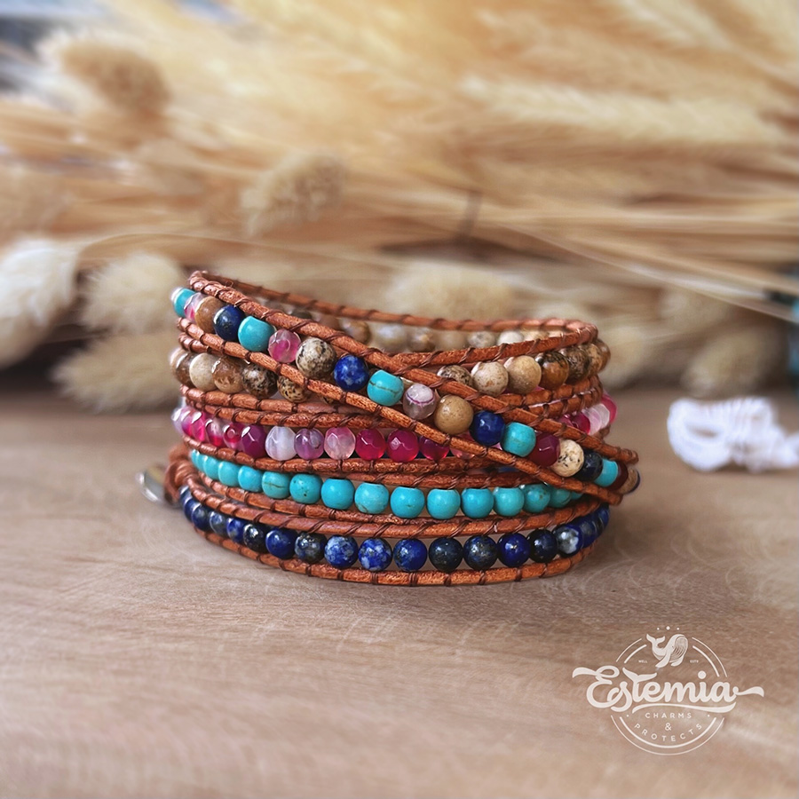 - Wrap náramek z lapis lazuli, jaspisu, achátu a tyrkenitu